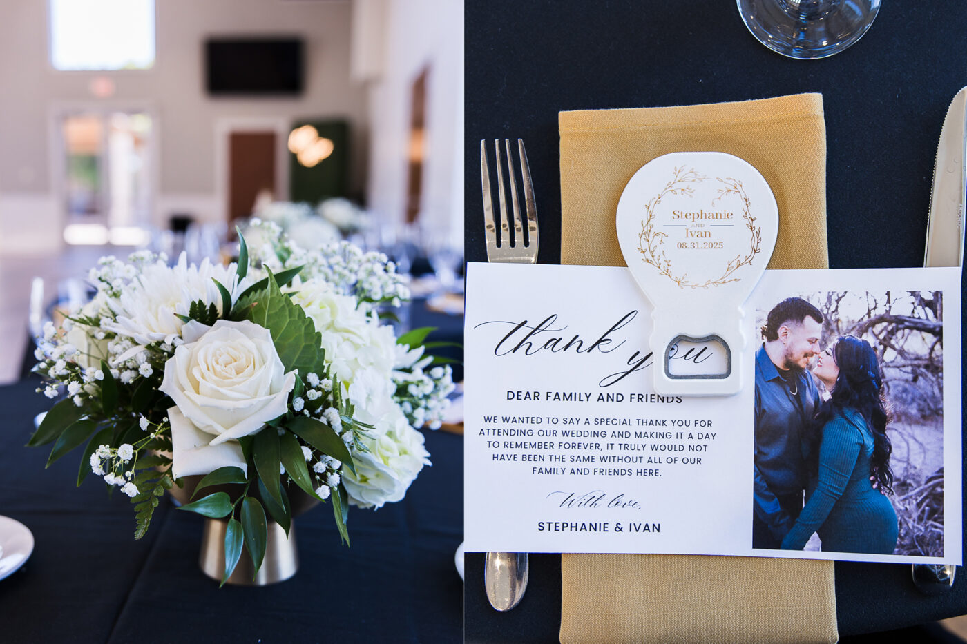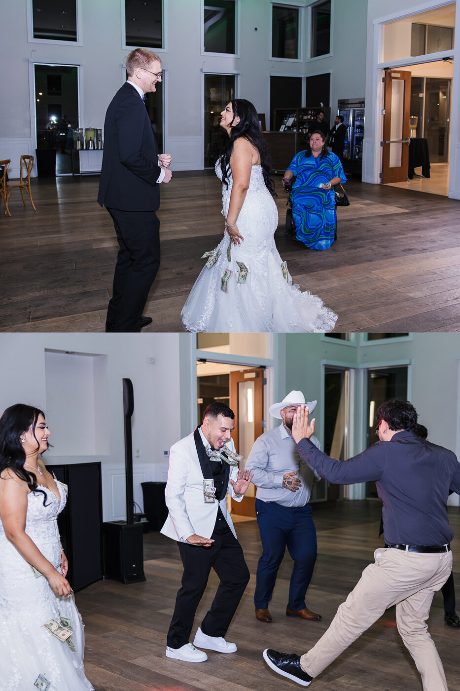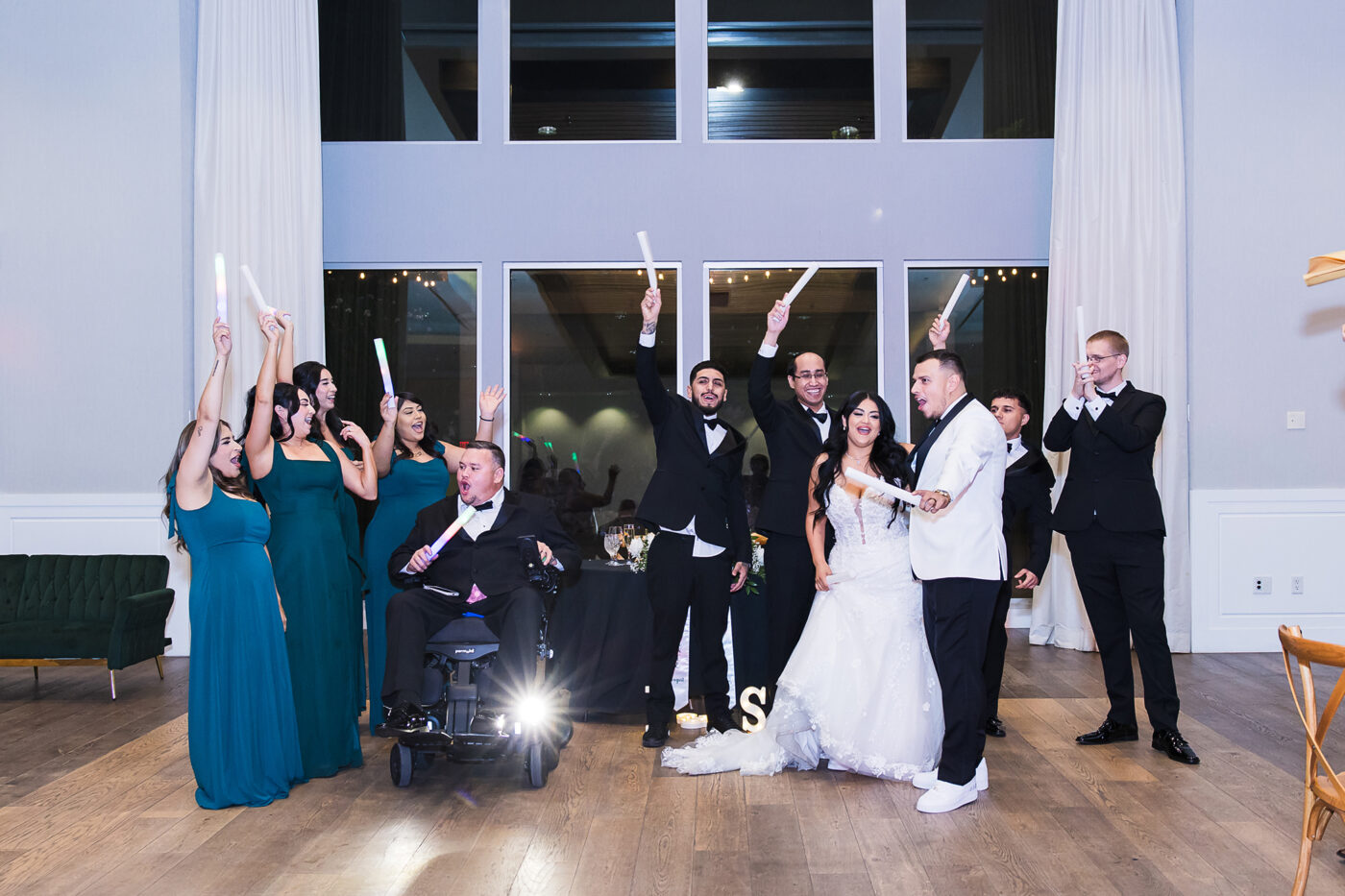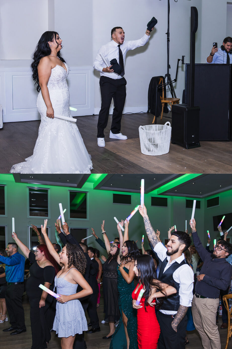 More highlights from the night were the money dance and the glow sticks! The money dance is always entertaining, seeing lots of guests dance with the bride or groom while attaching money to their clothes. The light up glow sticks were a hit, especially with the kiddos. Also, Ivan and Stephanie thew out T-shirts to their crowd like they do in at a basketball game or something. I haven’t see that one before!